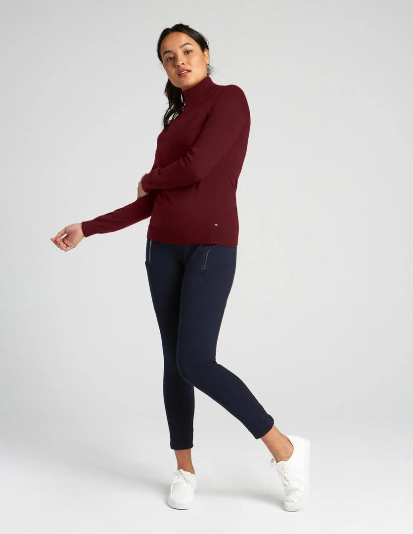 Supple and soft turtleneck sweater made with TENCEL™ Modal, sourced from sustainable beech wood and produced in an environmentally responsible pulp to fiber process. Textured knit top with rib details at hem and raglan sleeves.