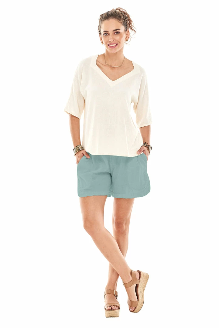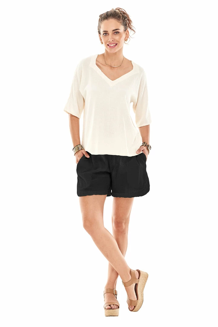 Our only pair of cotton gauze shorts complete with a drawstring waistband, pockets, and a side slit hemline.