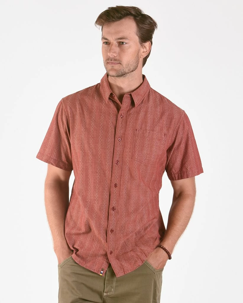 As stylish as it is trail-ready, the Arjun Short Sleeve Shirt is made from a lightweight blend of organic cotton and hemp, with an intricate woven pattern made of dyed yak yarn. Its seams are placed away from shoulder tops and pack straps for comfort as you move. Its subtle geometric pattern is derived from Bhutanese textiles.