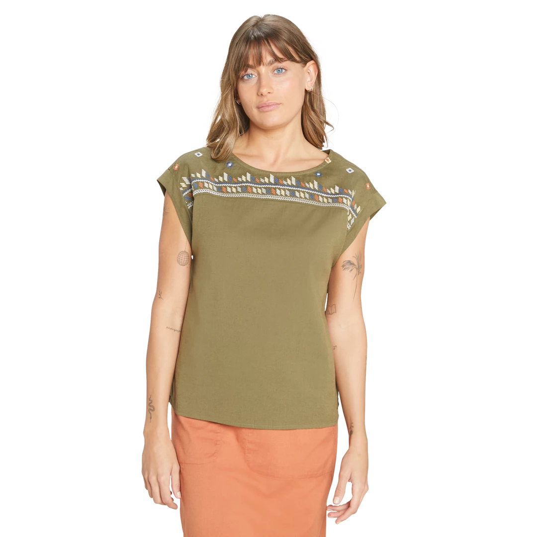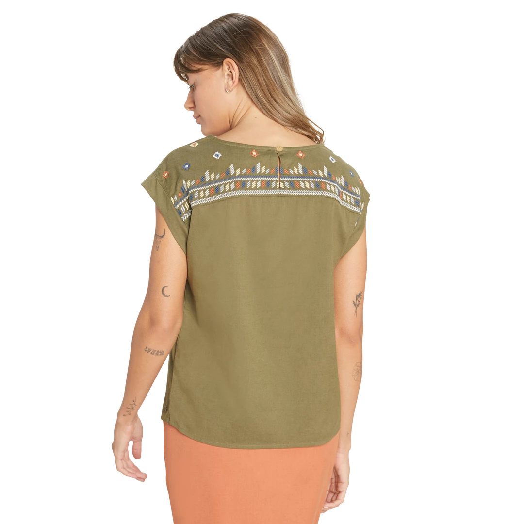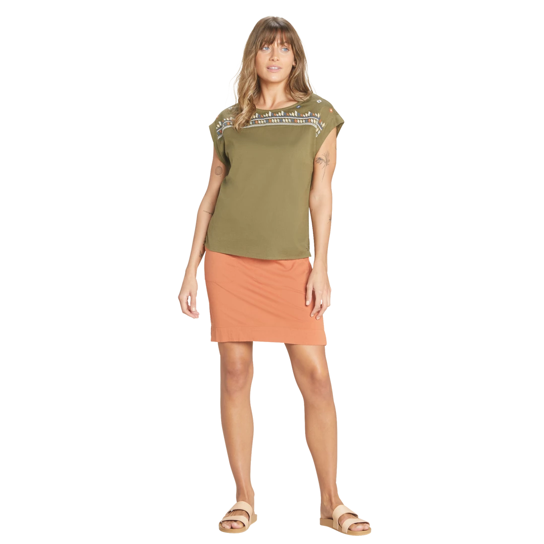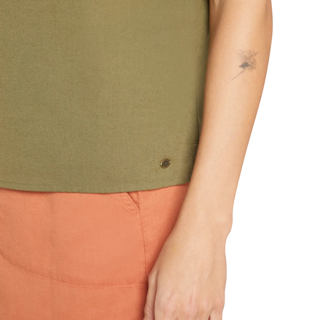 Versatile, light and stylish, the Tharu short sleeve Top is ultimate everyday wear. Crafted from a blend of quick drying, soft and sustainable fabrics, it delivers impeccable moisture control and all day comfort. A drop shoulder, cap sleeve and side slit enhances mobility while the faux wood back closure provides a modern look.