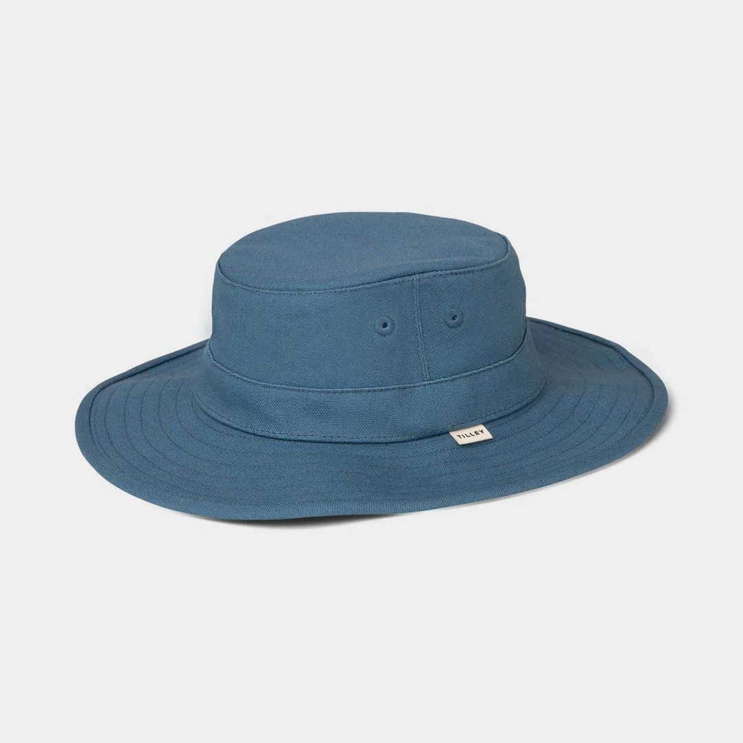 The Mini T3 Classic hat is inspired by the very first Tilley hat but on a smaller scale. Finished to be water repellant, it’s designed with a wider flat brim, circular crown, snap-up sides along with our embroidered eyelets for easy ventilation. UPF 50+ provides sun protection for the little camper.