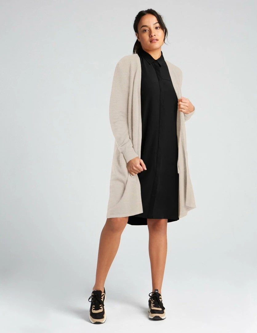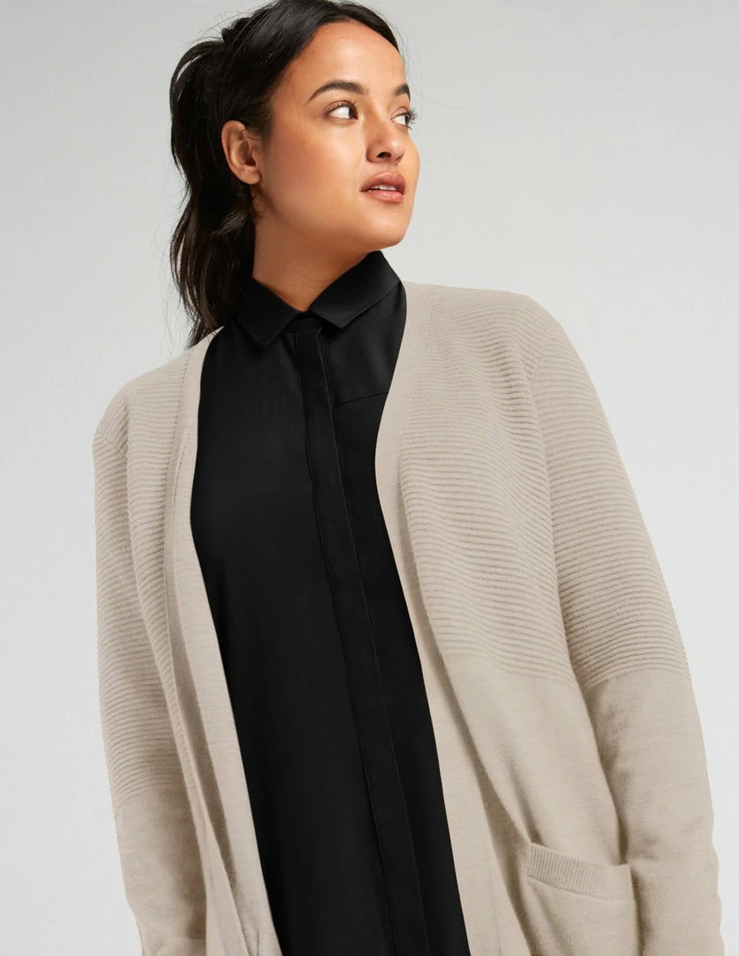 Supple and soft open cardigan made with TENCEL™ Modal, sourced from sustainable beech wood and produced in an environmentally responsible pulp to fiber process. Textured knit vest with two welt pockets at front and rib details at hem.